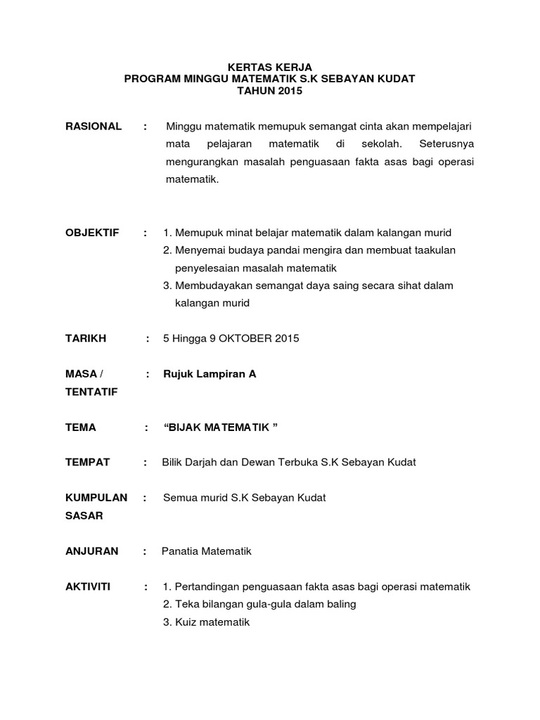 Kertas Kerja Program Minggu Matematik 2015 Pdf